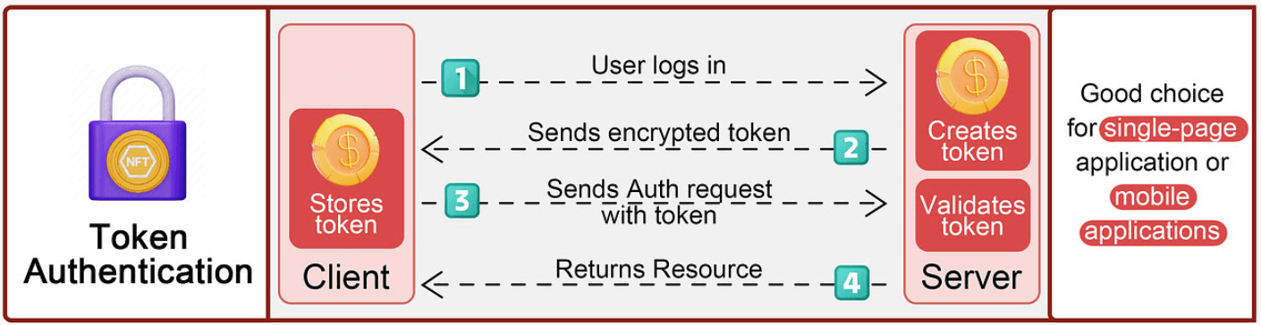 使用生成的令牌,如JSON Web Tokens(JWT),在客户端和服务器之间交换。这种方式比基本认证提供了更高的安全性,因为它不需要在每次请求时发送登录凭据。这是一种更适合安全性和可扩展性需求较高的场景的方法。