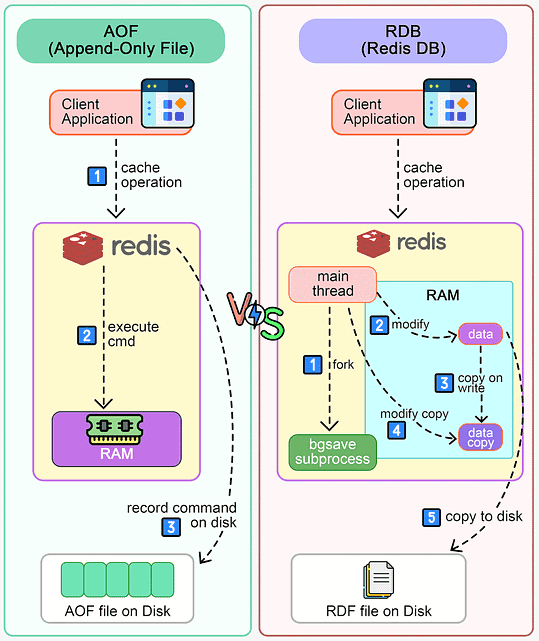 不过,别担心!正如超级英雄总有备用计划一样,Redis 也有它的“保险箱”——数据持久化。这就好比是给你的宝贵数据拍个照,存到一个安全的地方。下面,我们来看看 Redis 如何用两种魔法手段将数据从易逝的内存转移到稳如磐石的磁盘: