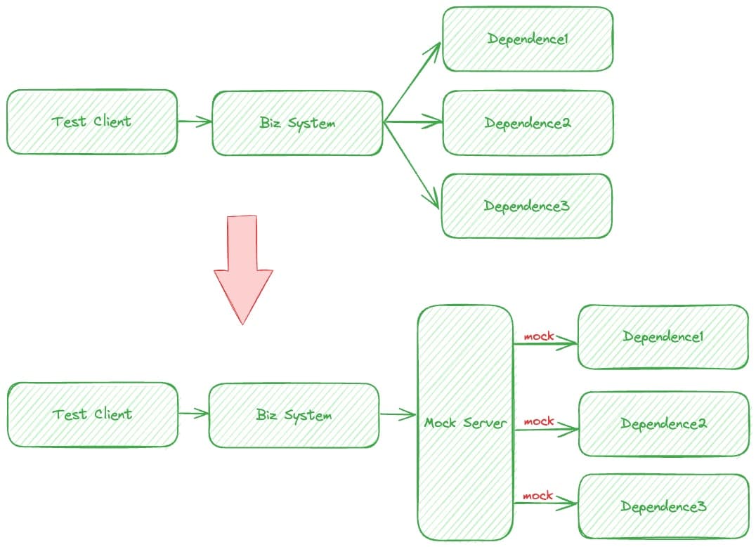 主要包括两种使用方式,一种是通过一个现成的 Mock Server 服务,这种的好处是对代码无侵入,只需要将调用的 URL 修改为 Mock Server 提供的 URL 即可。另一种是在代码里面显式的编写相关的规则,这样的好处是不再需要单独启用服务,在代码里面就可以完成 Mock,主要在单测的时候使用。