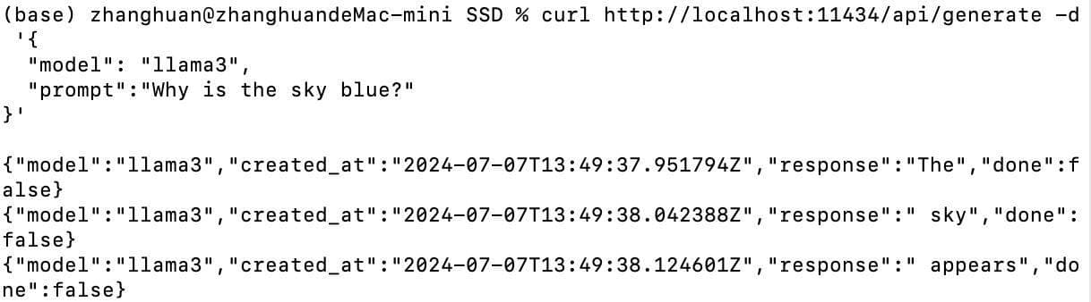 Below is an example of how to start the llama3 model with Ollama on a Mac computer. The process is similar for other operating systems.