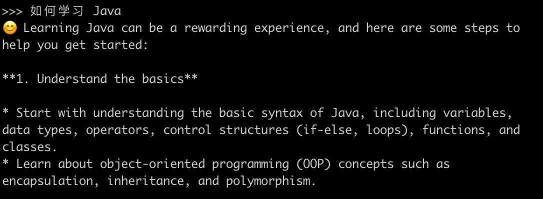 After starting successfully, you can enter a prompt to test if the model is running properly.
