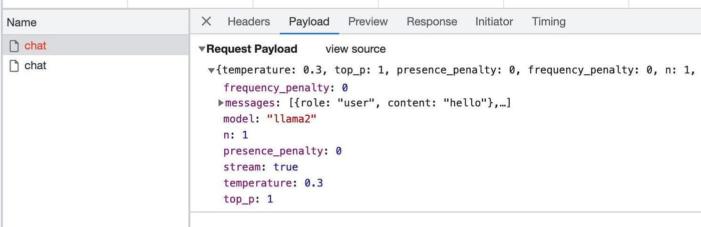 If you encounter any issues, you can also open the console in Obsidian to check the parameters of the HTTP request initiated by If you encounter any issues, you can also open the console in Obsidian to check the parameters of the HTTP request initiated by Obsidian. Here you can see that the model name matches the name in the configuration, so if it is filled in incorrectly, it will not work.