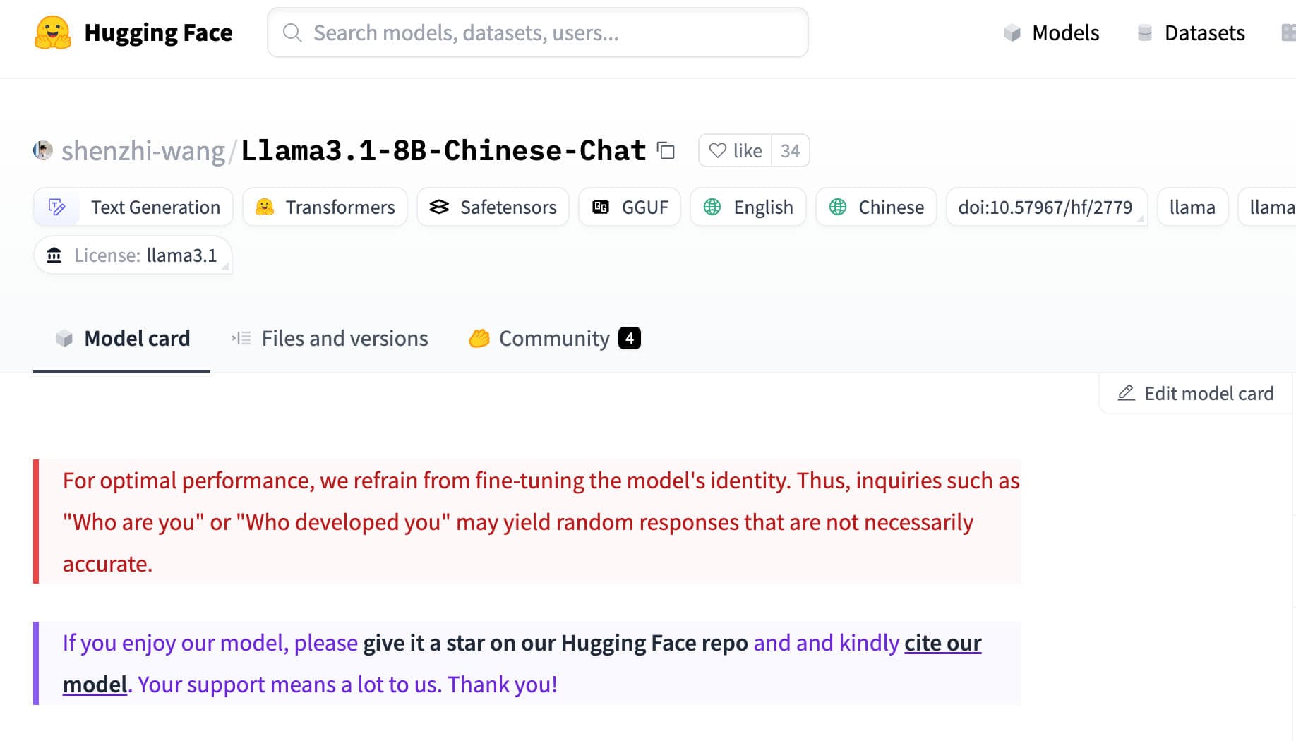 Meta公司最近发布了Llama 3.1,但在中文处理方面表现平平。幸运的是,现在在Hugging Face上已经可以找到经过微调、支持中文的Llama 3.1版本。这篇文章将手把手教你如何在自己的Mac电脑上安装这个强大的模型,并进行详细测试,让你轻松享受流畅的中文AI体验。准备好了吗?让我们一起开始吧!