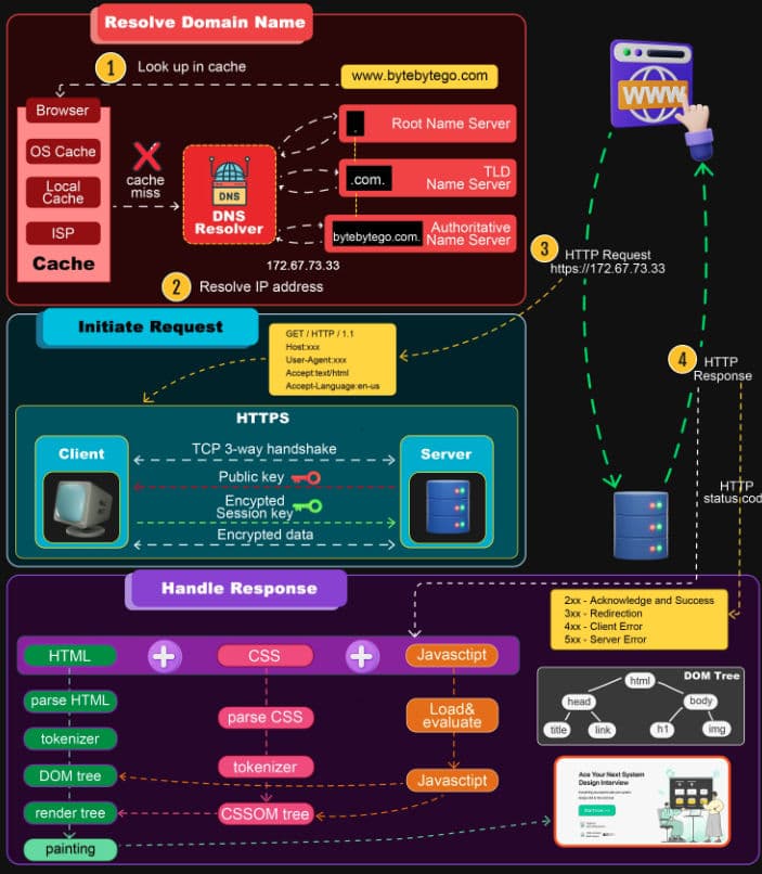 💌 接下来,您的浏览器会像发送一封密信,构建一个HTTP请求,向服务器询问您渴望探索的网页内容。服务器接到这封信后,会回送一份神秘的藏宝图,通常是HTML文件的形式。