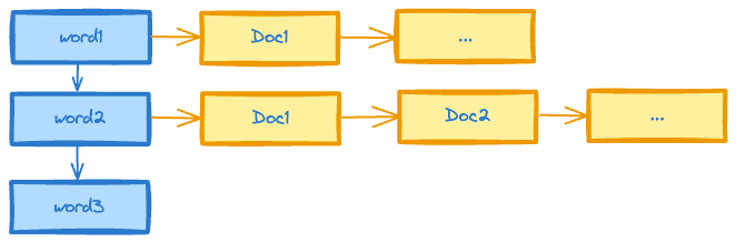 在倒排索引中,每个关键词都与出现该关键词的文档相关联。这个关联可以通过一个指向文档的指针来实现。倒排索引以关键词为索引,每个关键词都有一个对应的包含该关键词的文档列表。