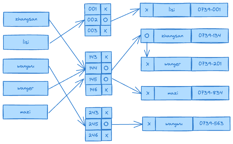 冲突问题:当多个键被哈希到同一个桶中时,就会发生冲突。为了解决冲突问题,通常采用开放地址法或者链式法来处理冲突。这可能导致索引的性能下降,尤其是在桶的填充因子较高时。
